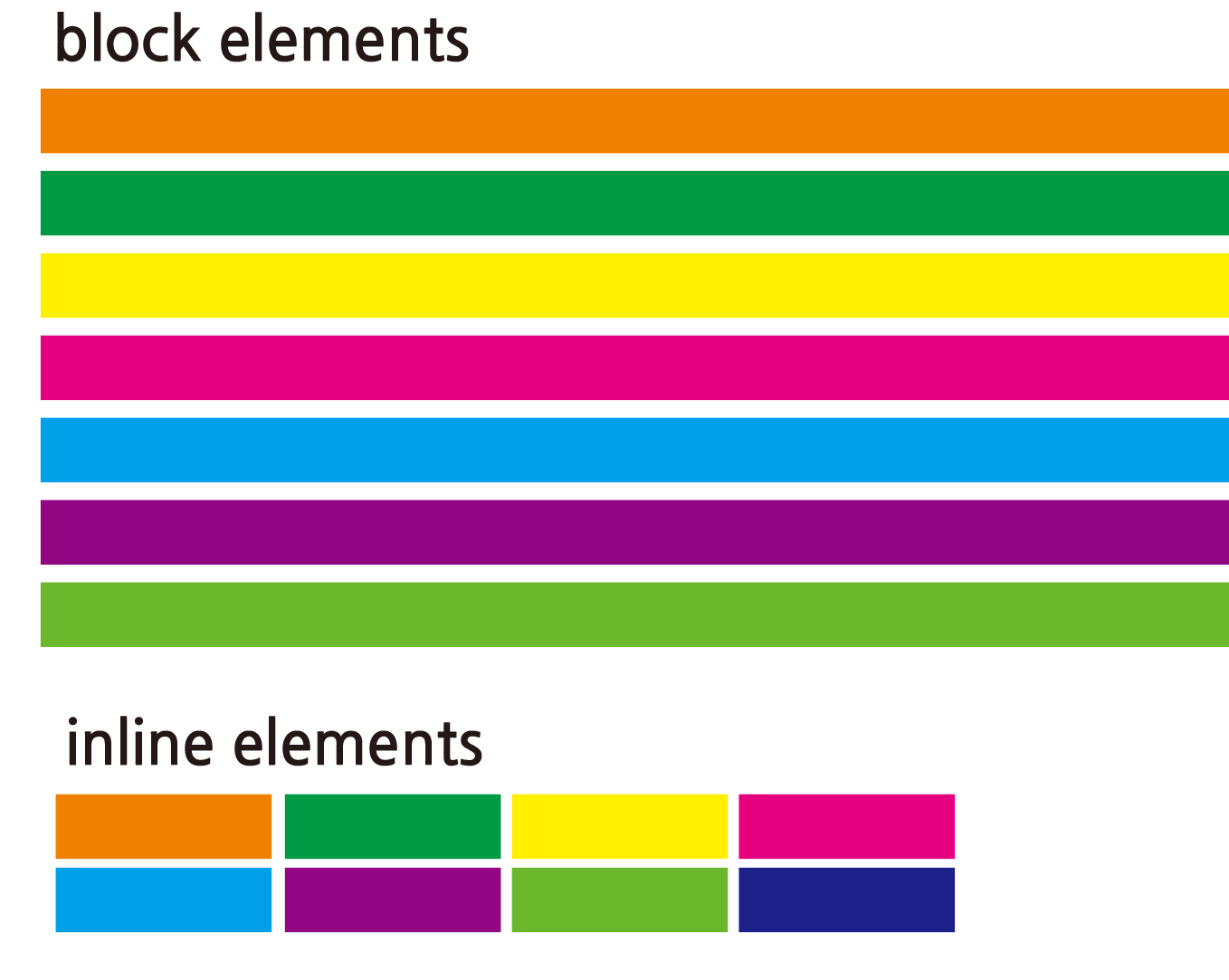 EX) p, h1~h6, ul, ol, div, blockquote, form, hr, table, figure